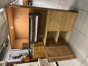 129 dvě osvětlené komody z dubového masívu 88x40x140cm po 2970Kč