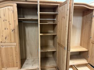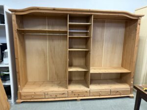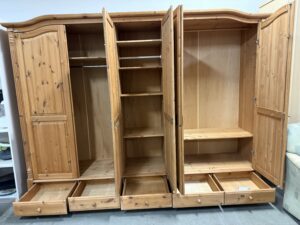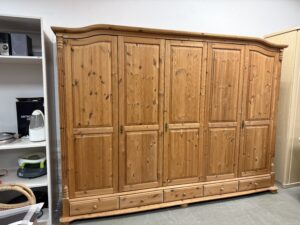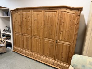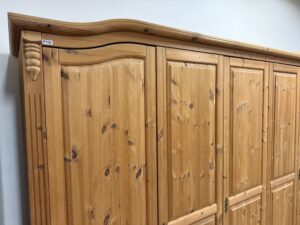 155 pětidveřová borovicová šatní skříň- suché,nelakované dřevo 290x65x210cm za 8470Kč