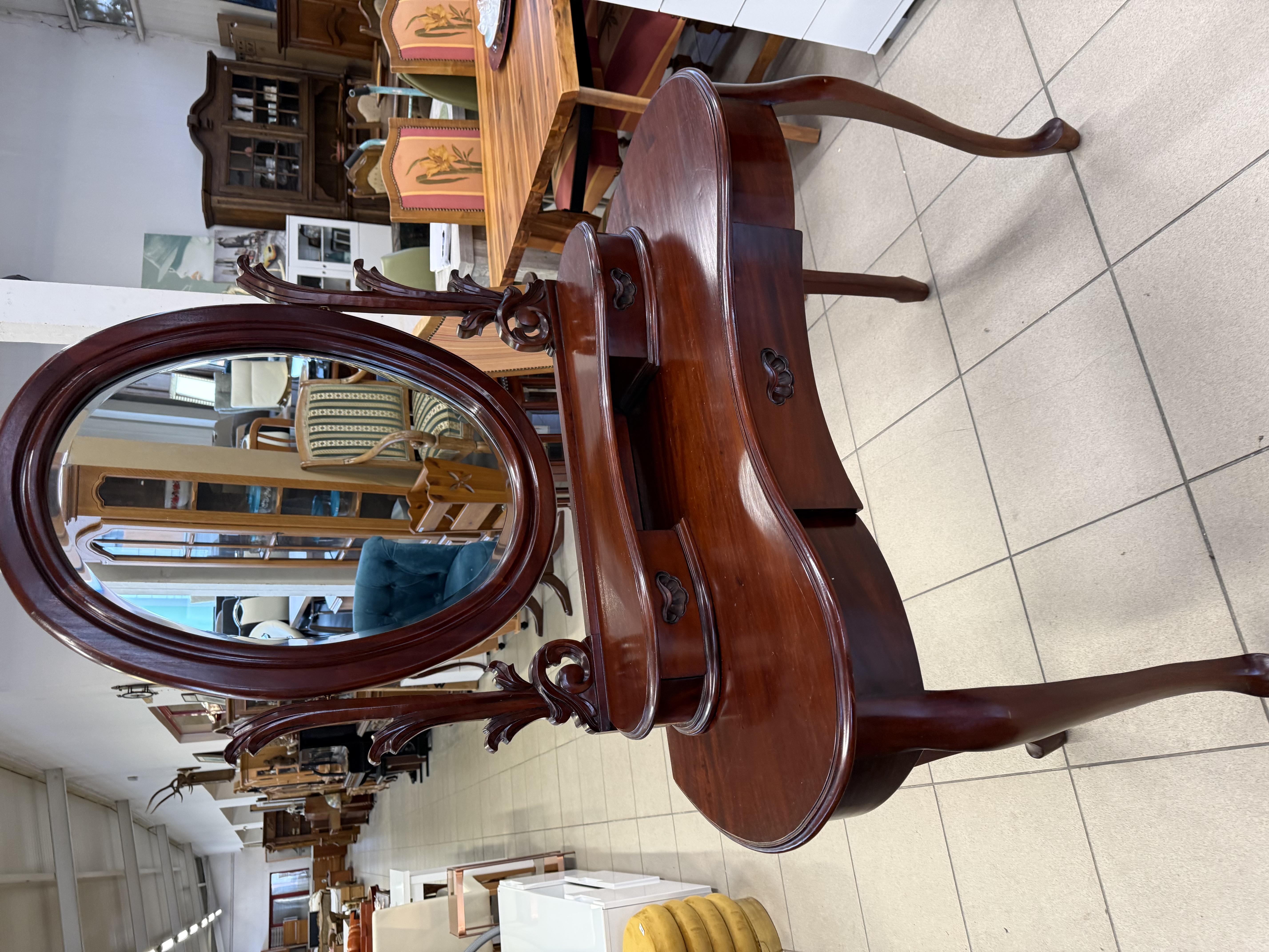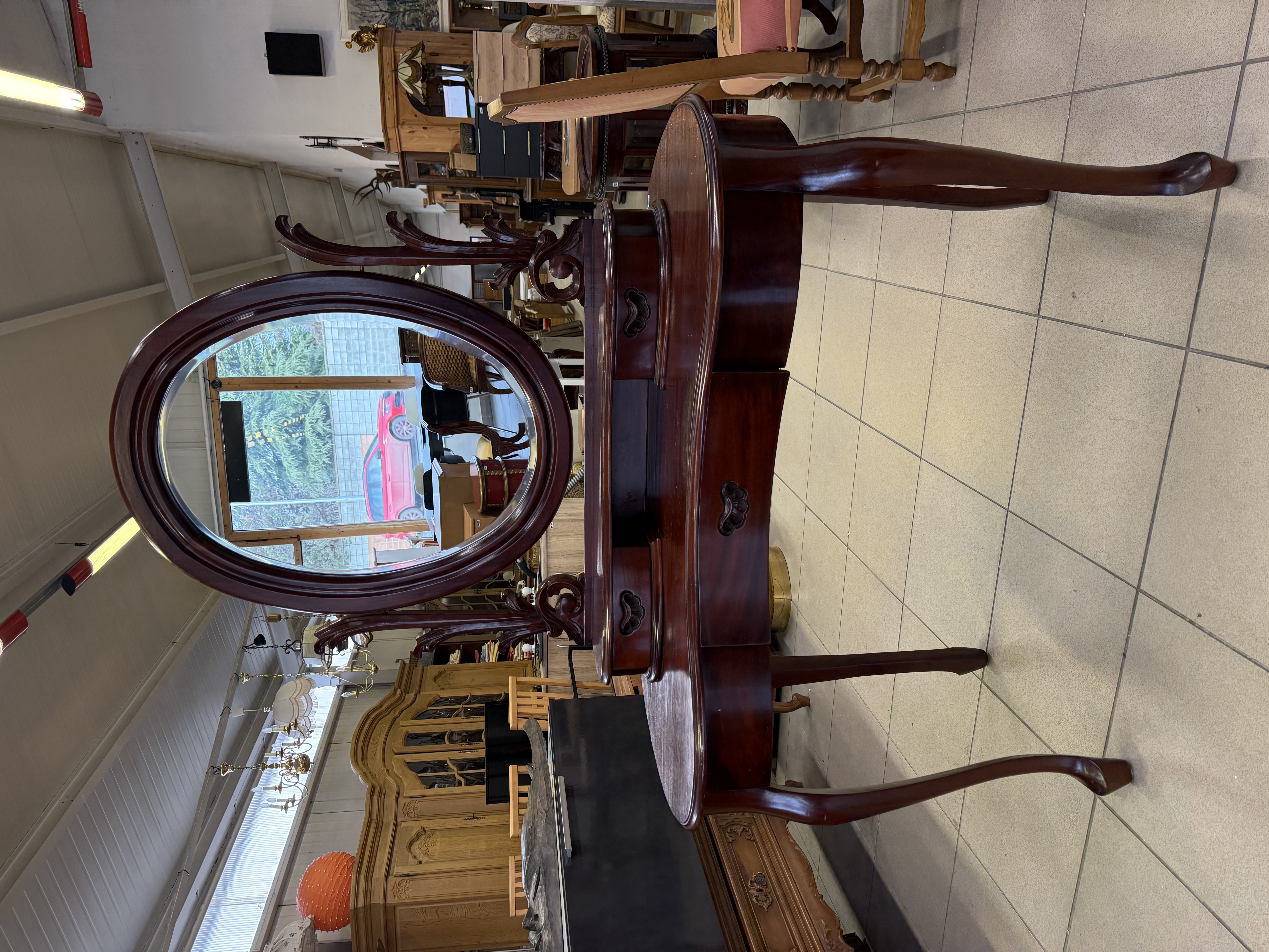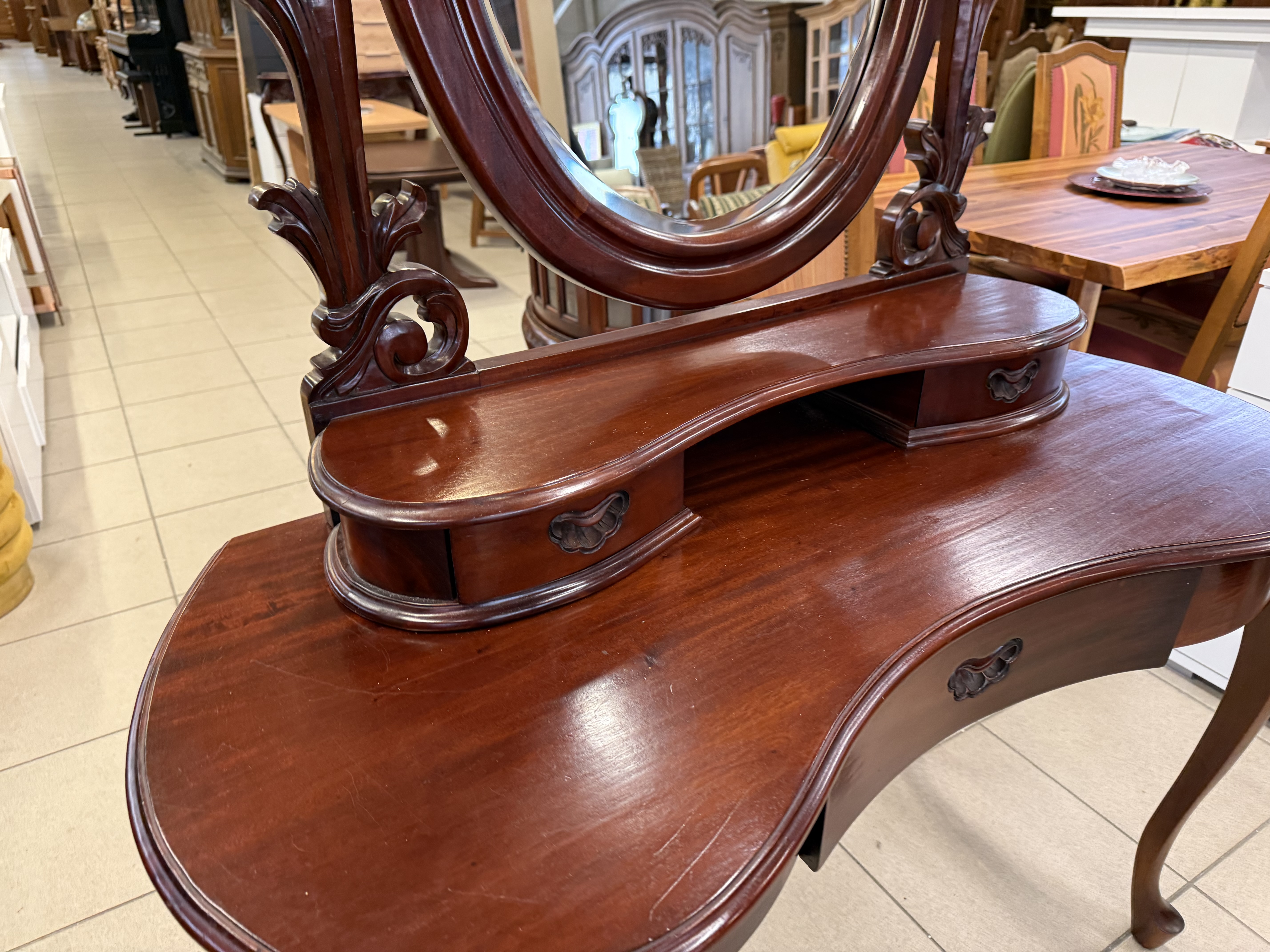 Tradiční konzolový oboustranný stolek s třemi zásuvkami masívní mahagon povrchová úprava voskováním a leštěním 140...