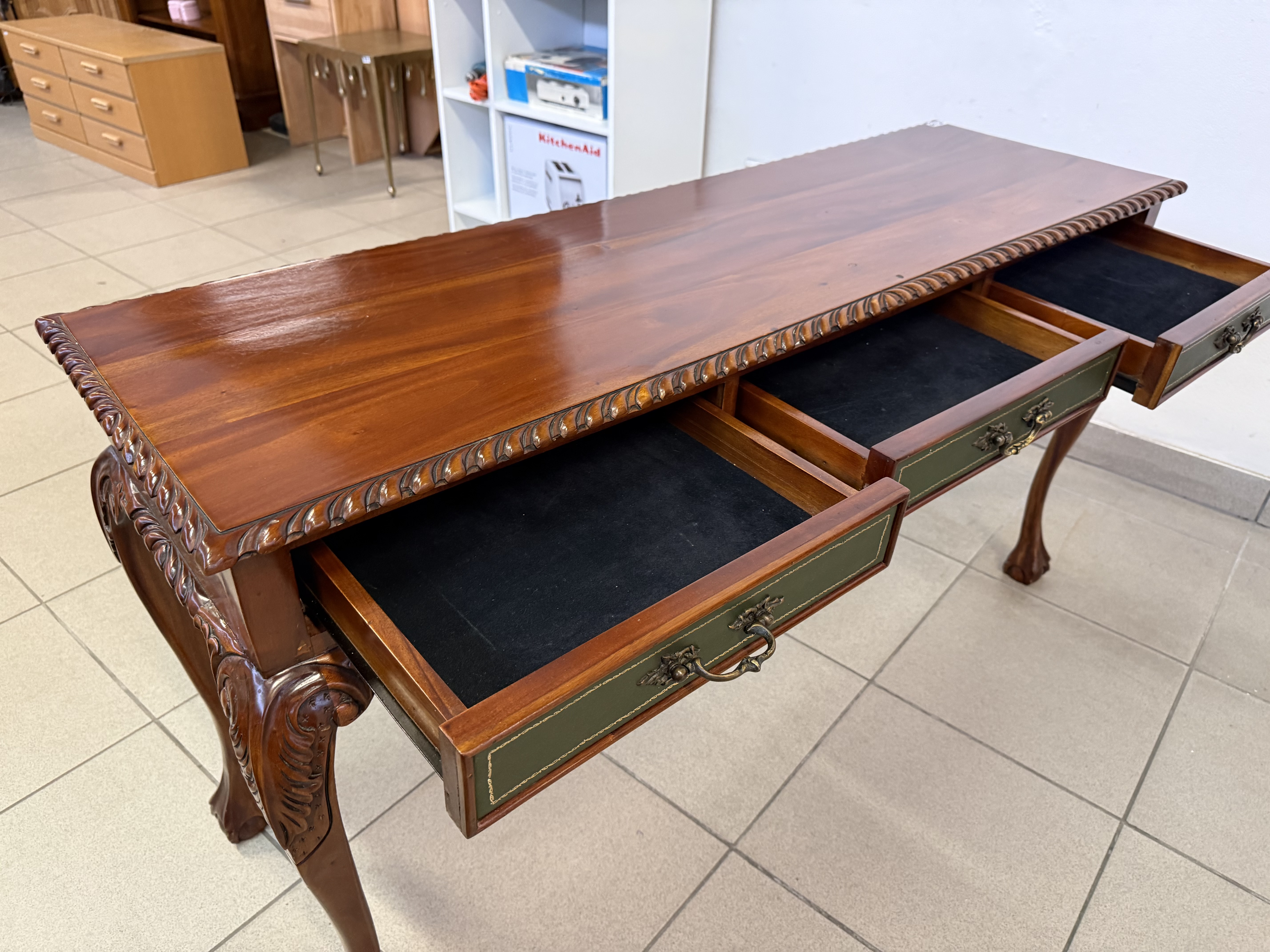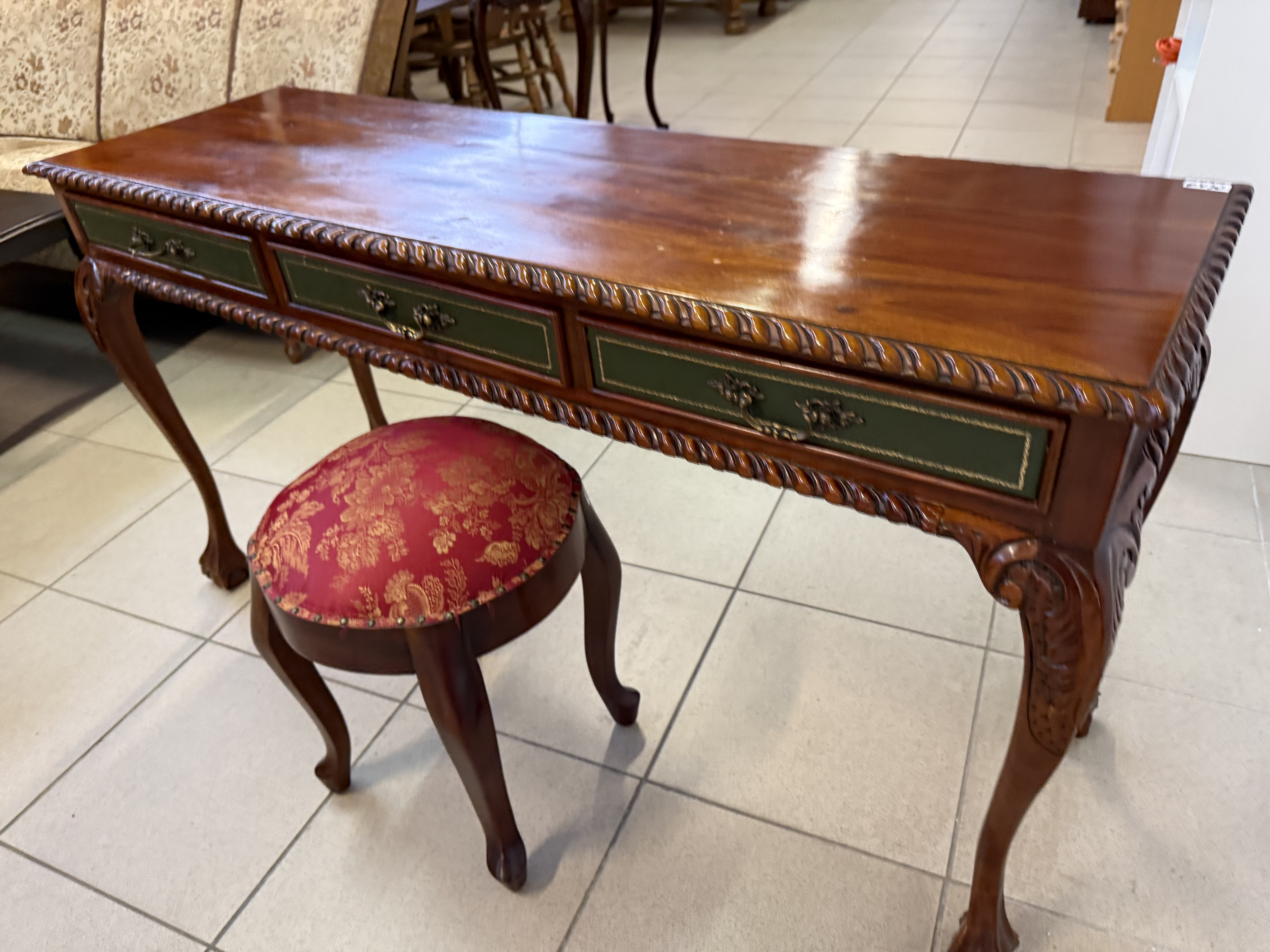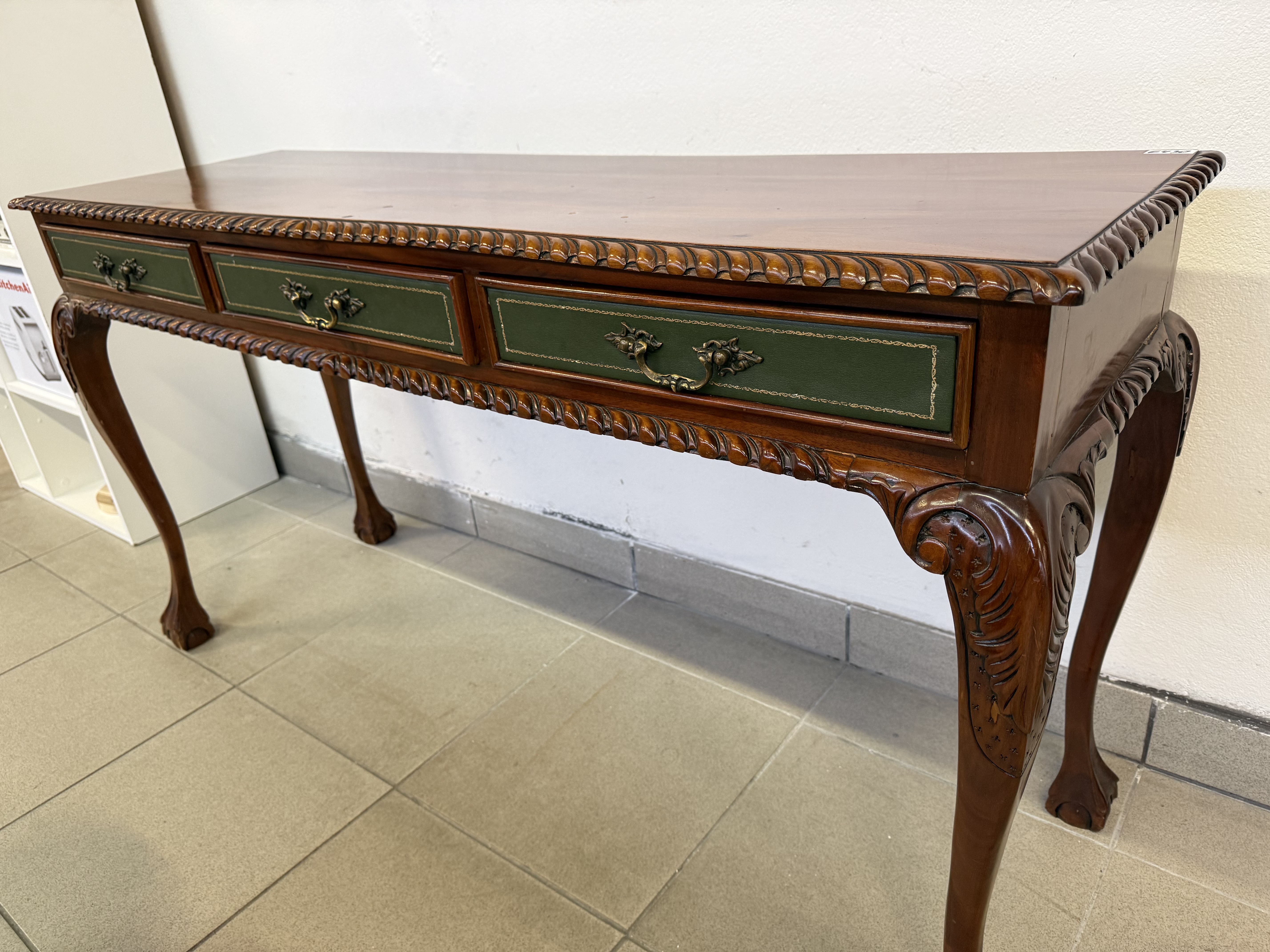 283 Chippendale konzolový mahagonový stolek tříšuplíkový za 6430Kč