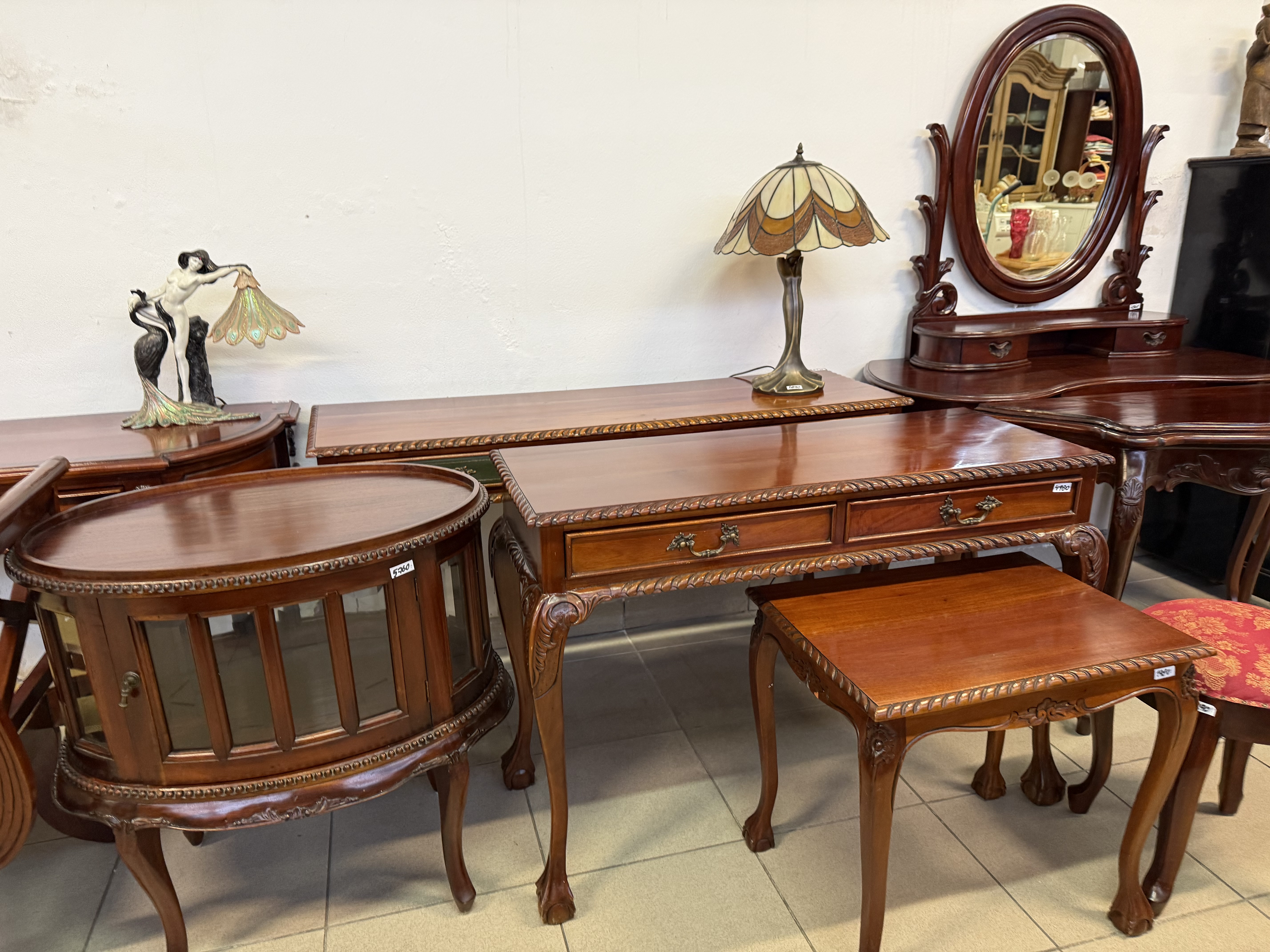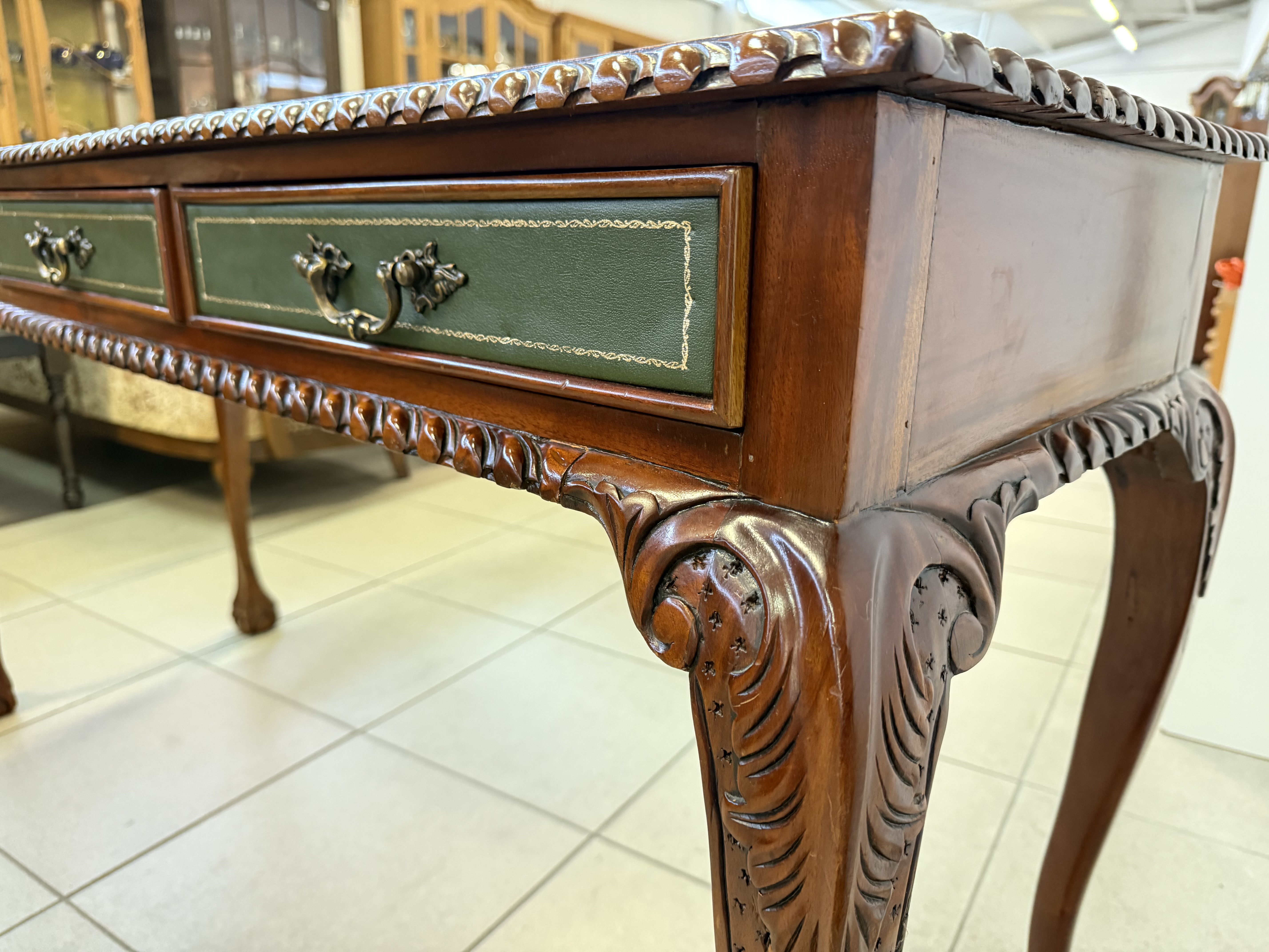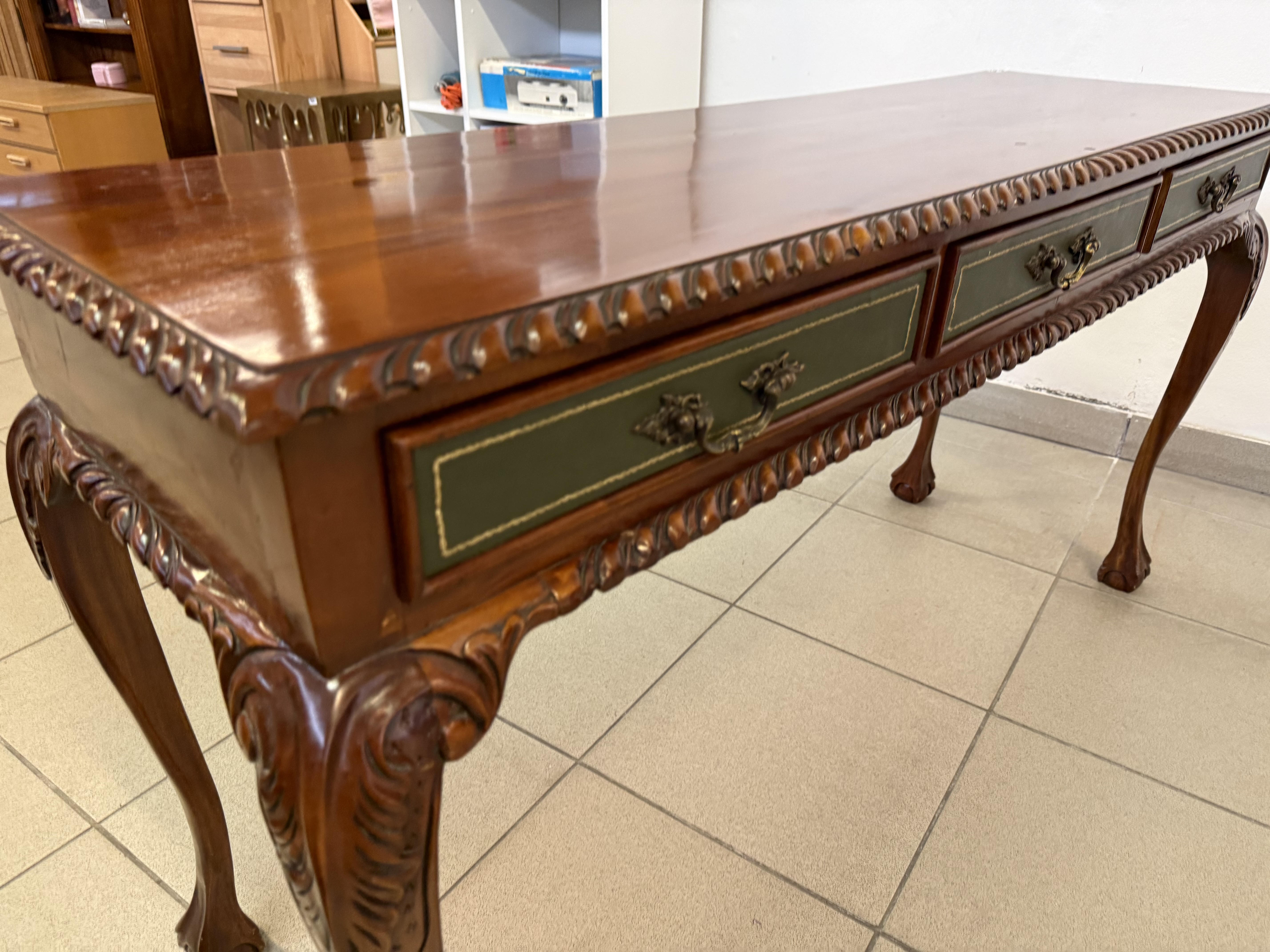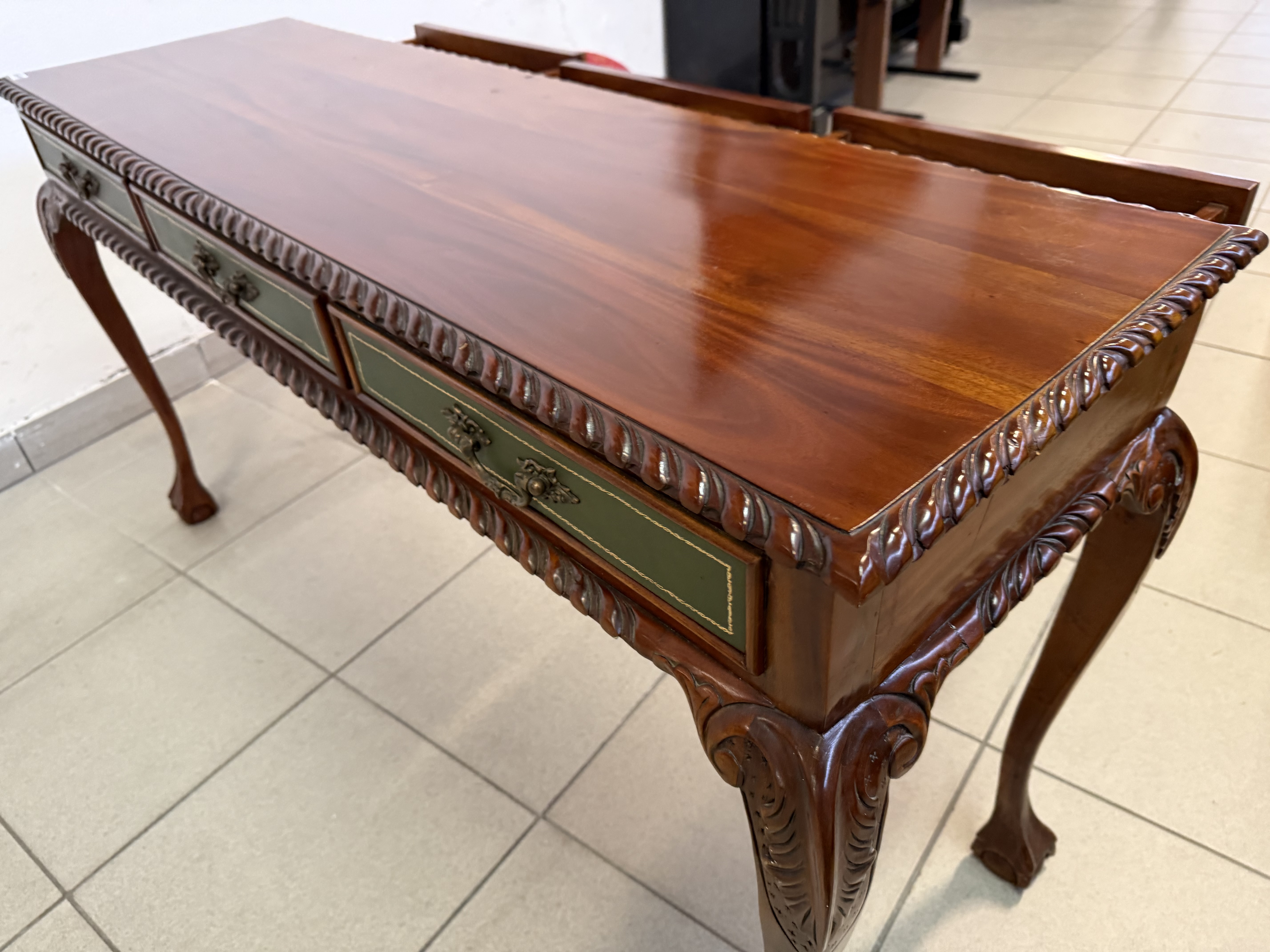 283 Chippendale konzolový mahagonový stolek tříšuplíkový za 6430Kč