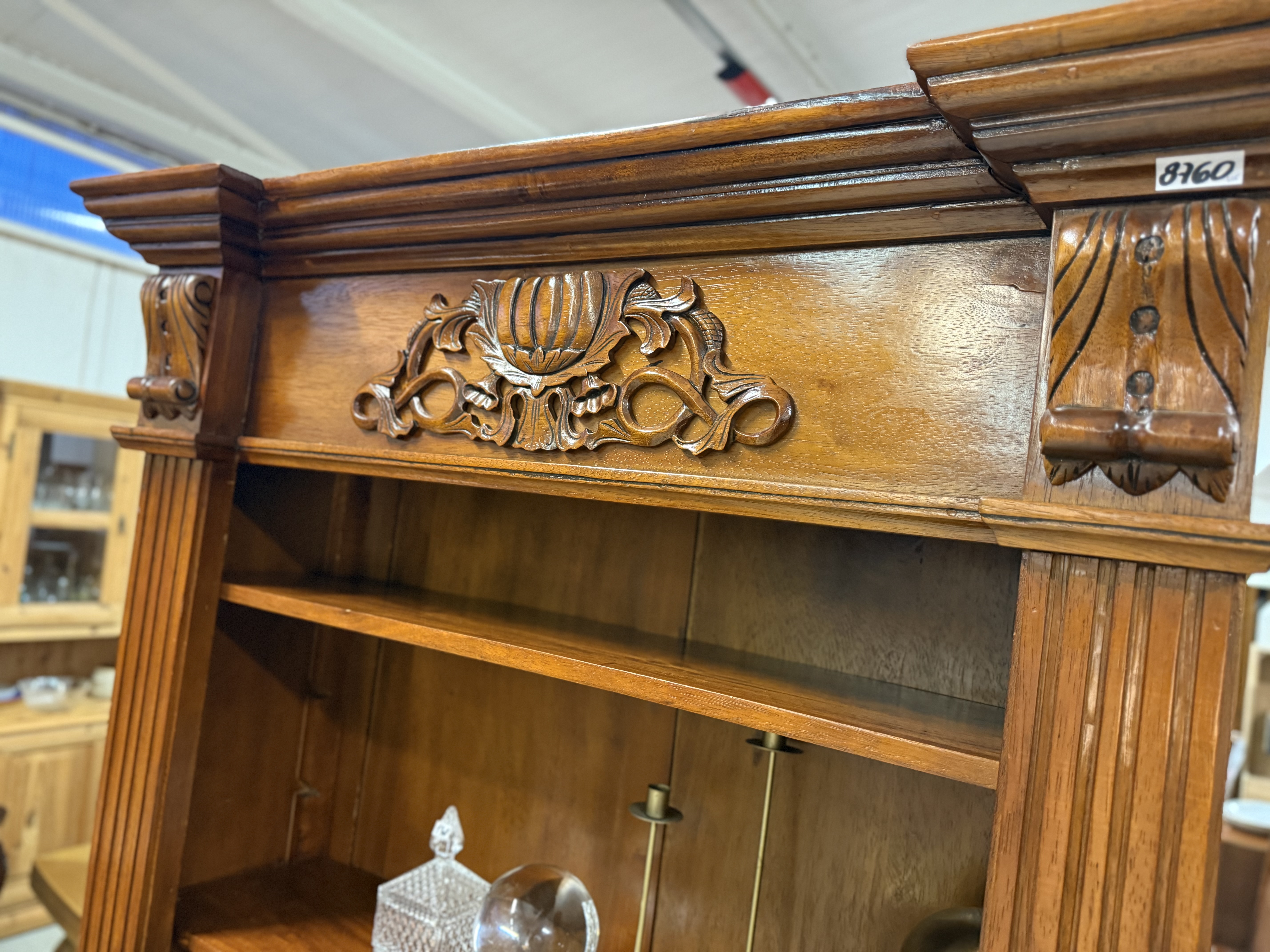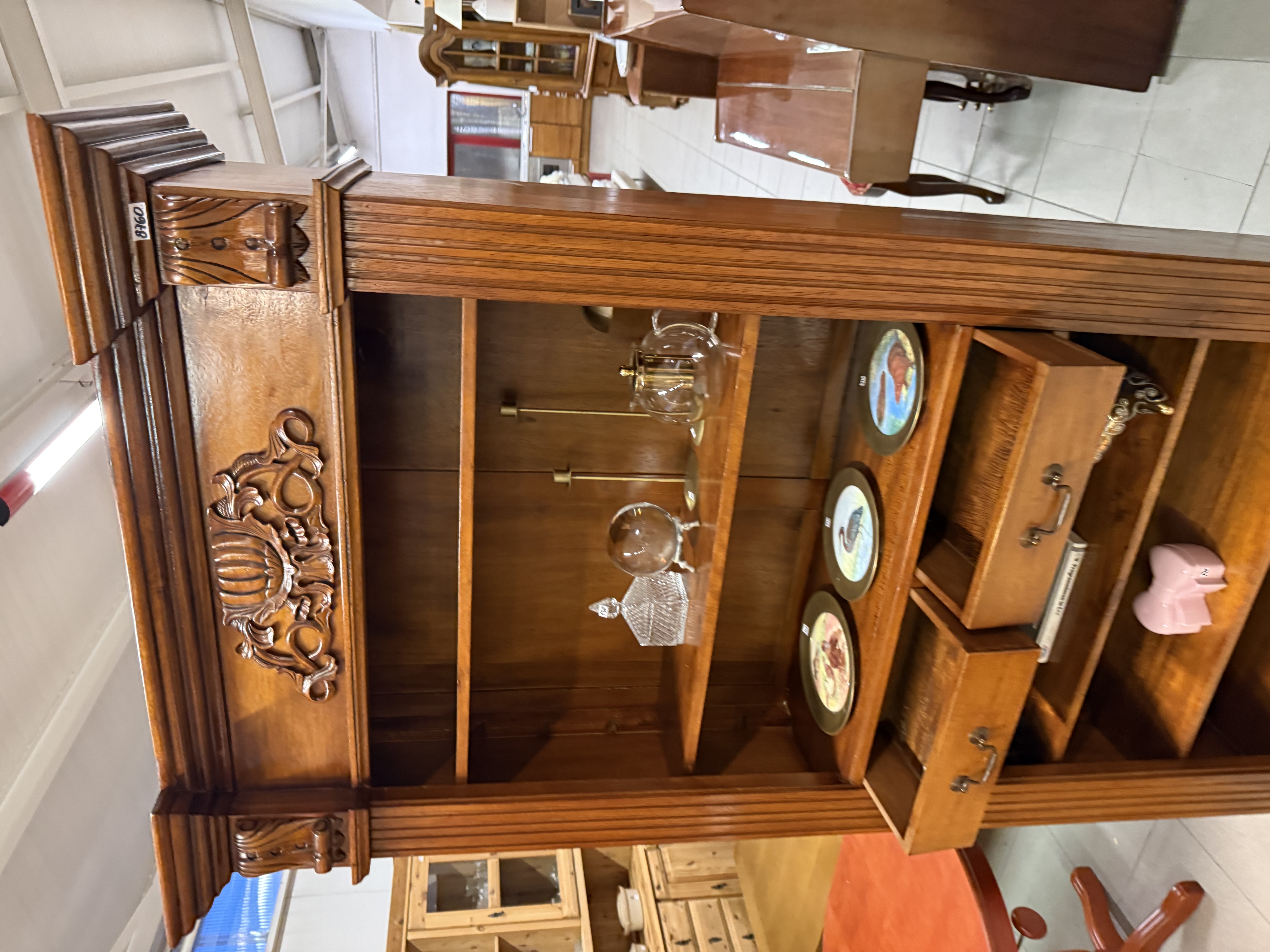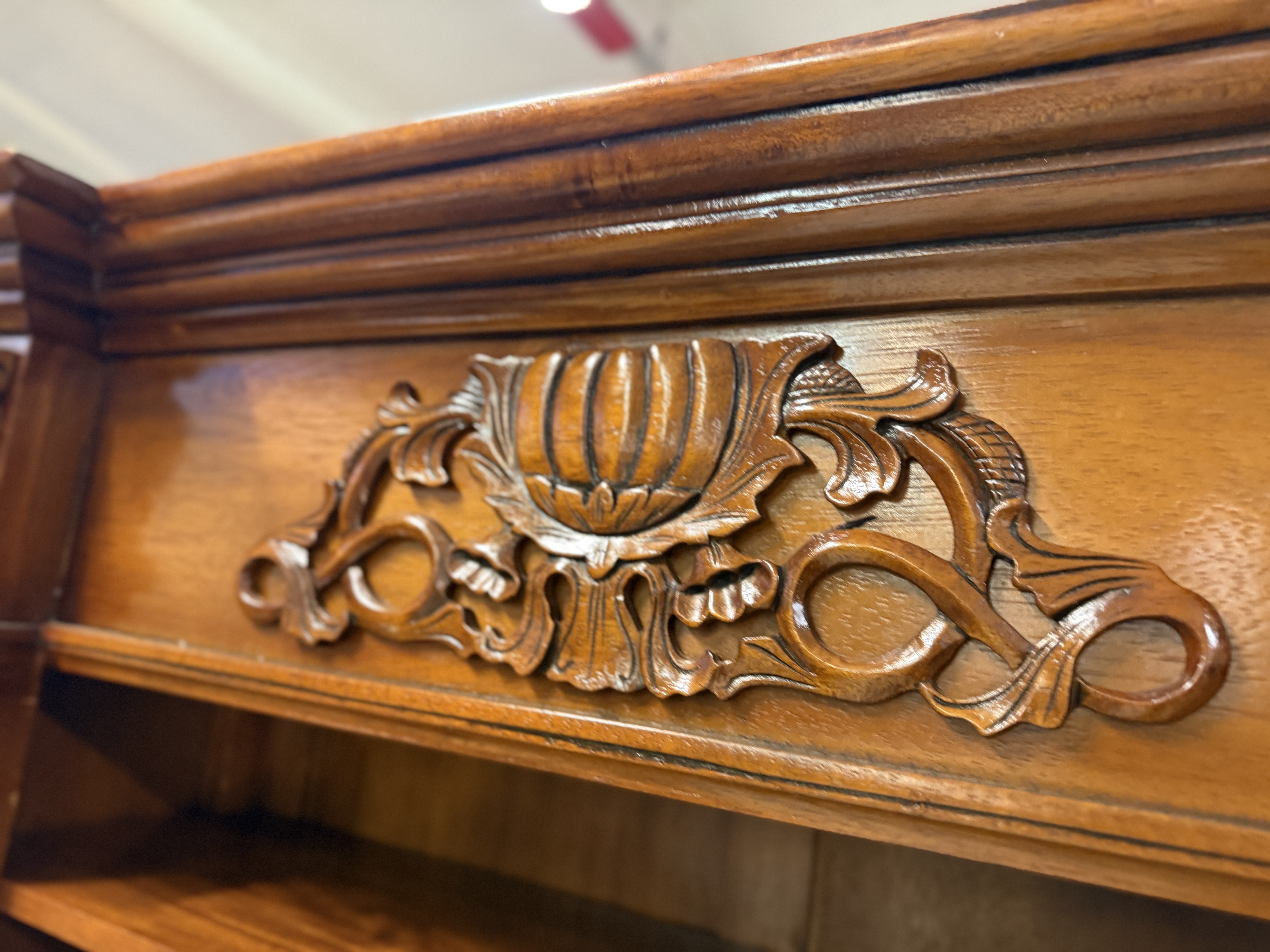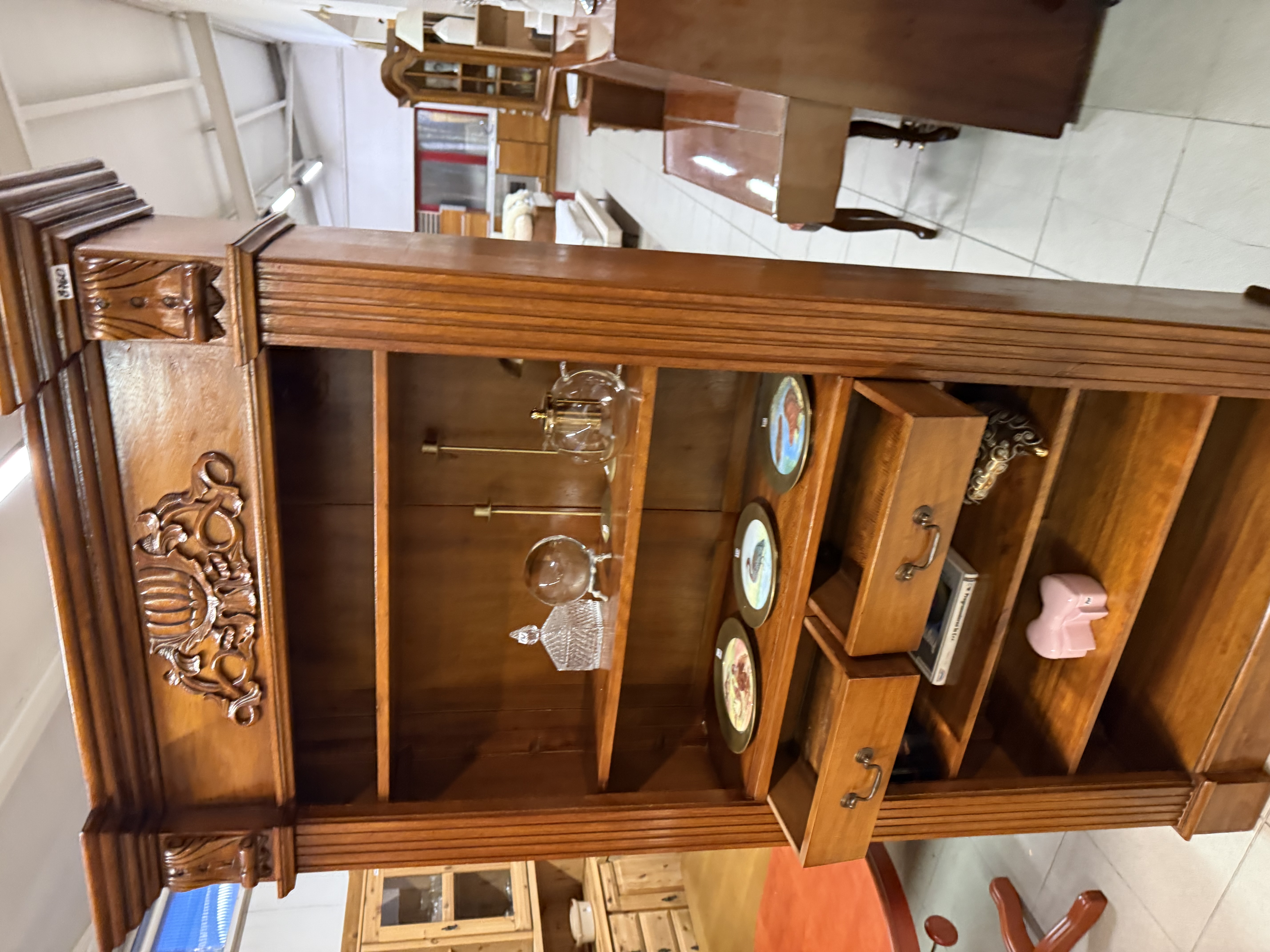 řezbovaná knihovna z masívu v neokoloniálním stylu se dvěma šuplíky 110 x 40 x 205cm...