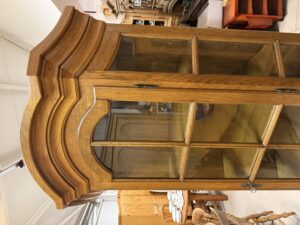 190 dubový rohový prosklený příborník s šuplíkem 60x60x200cm za 4980Kč