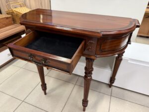 Praktický konzolový stolek s zásuvkou v klasickém provedení mahagon