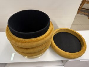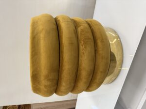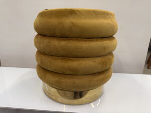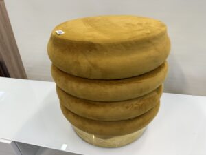 295 taburet s úložným prost.,okrový plyš a mosazná obruč prům.38cm,v 40cm za 960Kč