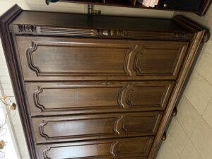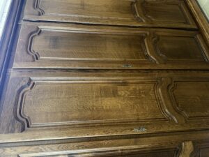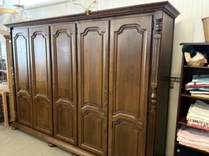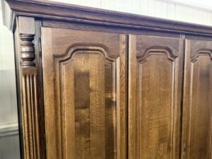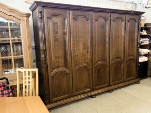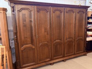 476 zdobená pětidveřová dubová skříň 305x65x212cm za 11840Kč
