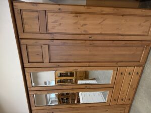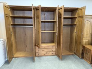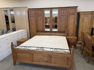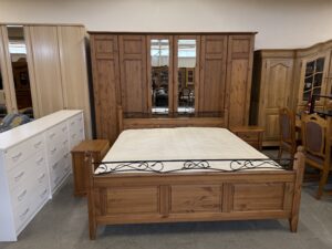 483 kompletní ložnice z borovicového masívu – skříň 300x60x215cm ,postel 2000x180cm +stolky za 17860Kč