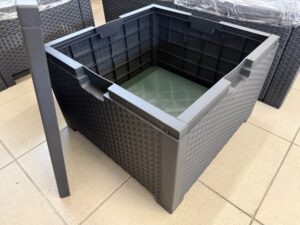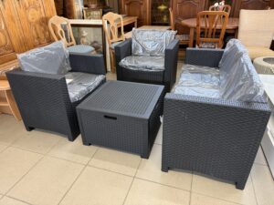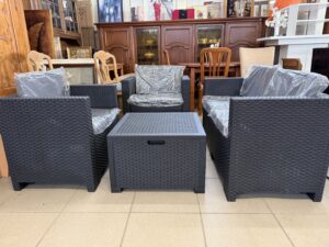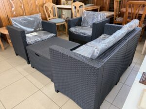 488 Italský ratanový set -pohovka 130x57x63cm,dvě křesla a stůl s úlož,prost.nové,II jakost za 3780Kč