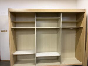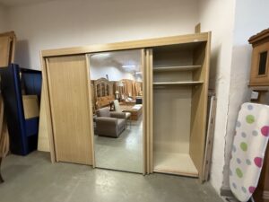 885 třídveřová hnědá posuvná šatní skříň 280x65x223cm za 7640Kč