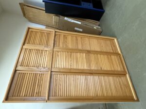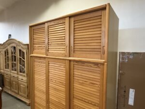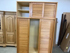 907 třídveřová skříň s posuvnými borovicovými dvířky 150x60x220cm za 4760Kč